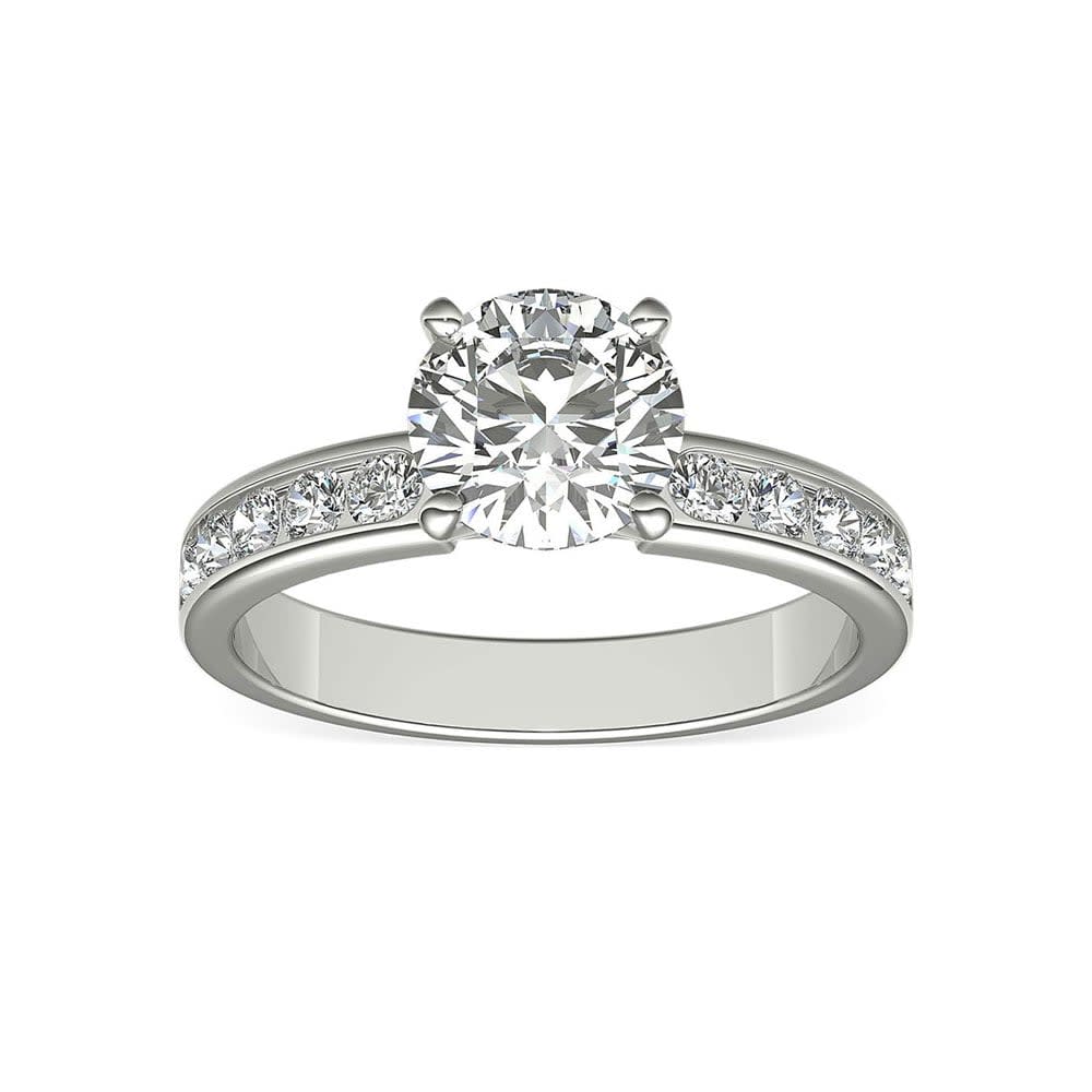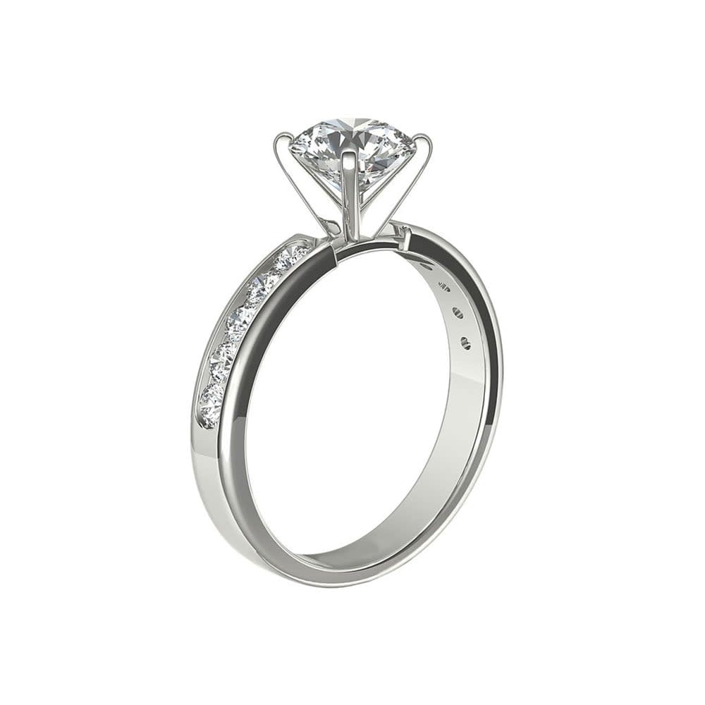 Cheerful and bright, this diamond engagement ring has a sophisticated edge and allures with its charm. It features a GIA certified claw set 0.60 carat diamond set on a scintillating channel-set diamond shank. Elegantly crafted in 18K gold, the sparkling diamonds radiate ethereal brilliance in a row. The band is available in 18K white, yellow, rose gold, and platinum 950. The jewellery is beautifully handmade to the highest standards. Shop directly from us and save over 40% when compared to high-street retail prices. We also offer unmatched 100 day returns. Buy online or book an appointment to visit our jewellery boutiques in Sydney and Melbourne.