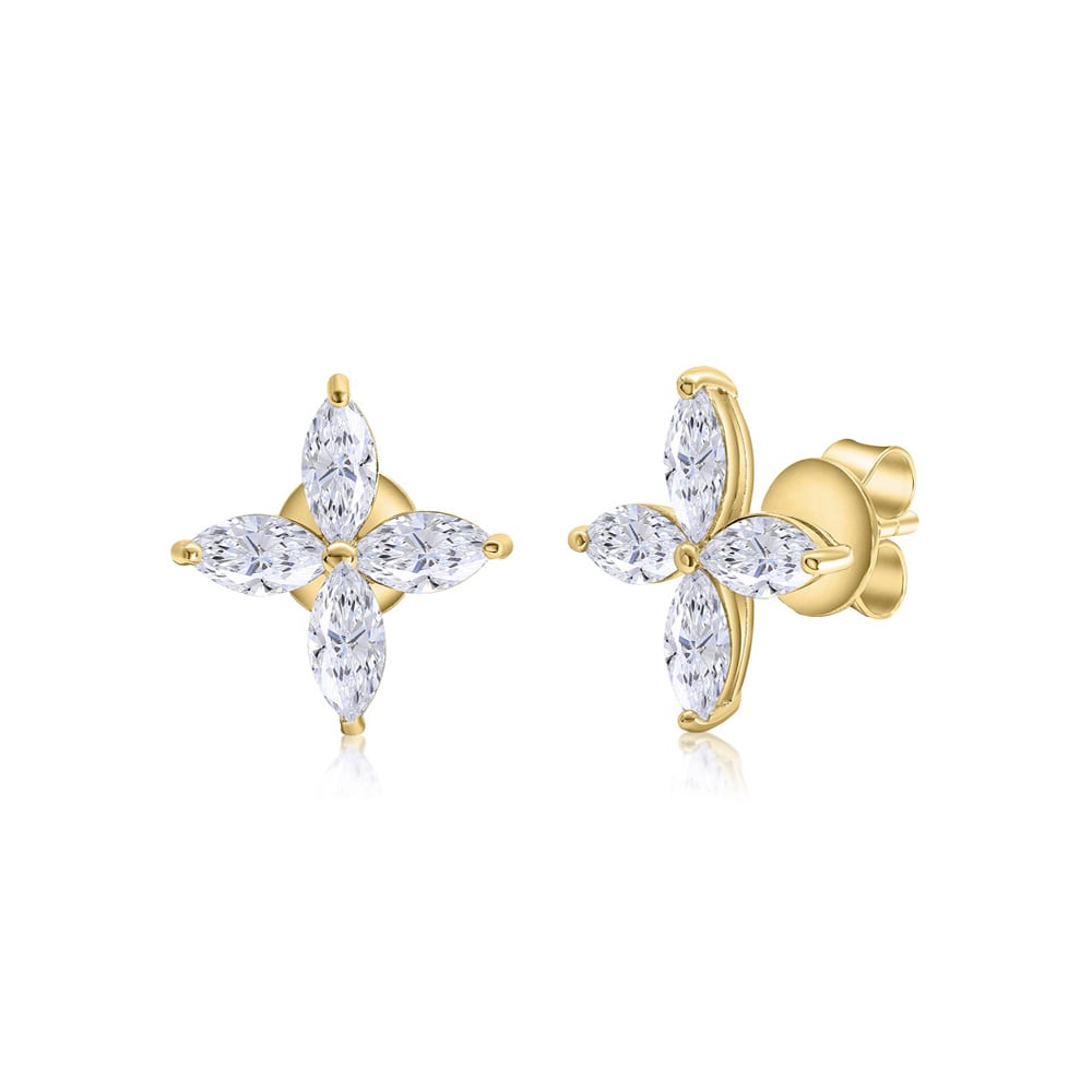 These women's studs showcase a delightful floral pattern that exudes charm and sophistication. The arrangement of the marquise shaped diamonds forms a captivating floral motif, reminiscent of blooming petals. The floral pattern adds a touch of whimsy and femininity, making these studs the perfect accessory for any occasion. To ensure both comfort and security, the studs are equipped with a secure push backing. All Temple and Grace jewellery is beautifully crafted to the highest standards and is made at our jewellery workshop directly by us (skilled jewellery craftsmen). This is why you can save over 40% when compared to high-street retail prices. We also offer a lifetime warranty and unmatched 100 day returns. You can shop online or book an appointment to visit our jewellery boutiques in Sydney, Melbourne, Brisbane, Perth and Adelaide.