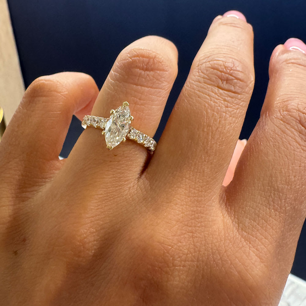 This Marquise Cut engagement ring with a diamond halo is set with a 1.00ct GIA Certified Marquise cut diamond in the center and diamonds halfway across the band. This ring style can be made to accommodate a center stone of any size/quality to meet your desired budget. All rings are available in Platinum, 18K White, Yellow, and Rose Gold. Temple and Grace are the only Australian jewellery store to offer a 100% peace-of-mind guarantee. It's simple, you either love your new diamond ring or get your money back. Need it customized? Call us for a no-obligation quote. Being Sydney based jewellery designers and makers means that we can offer you incredible value for your money. When you buy your jewellery directly from us, you cut out on the expensive high-street stores and save up to 40% on your jewellery.