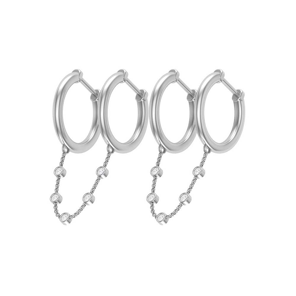 Fun earrings to wear. Great when there are two piercings on the same ear, where you would like to style your ear with dangles of diamonds hanging of hoops. Modern, fresh look and an earring for anytime and event. Set with natural diamonds which will dance with the light that reflects off them. The workmanship is amazing which will show the earring even more. Made by our professional jewellers. Available in rose, white and yellow gold. Ask our professional sales advisors for any assistance.